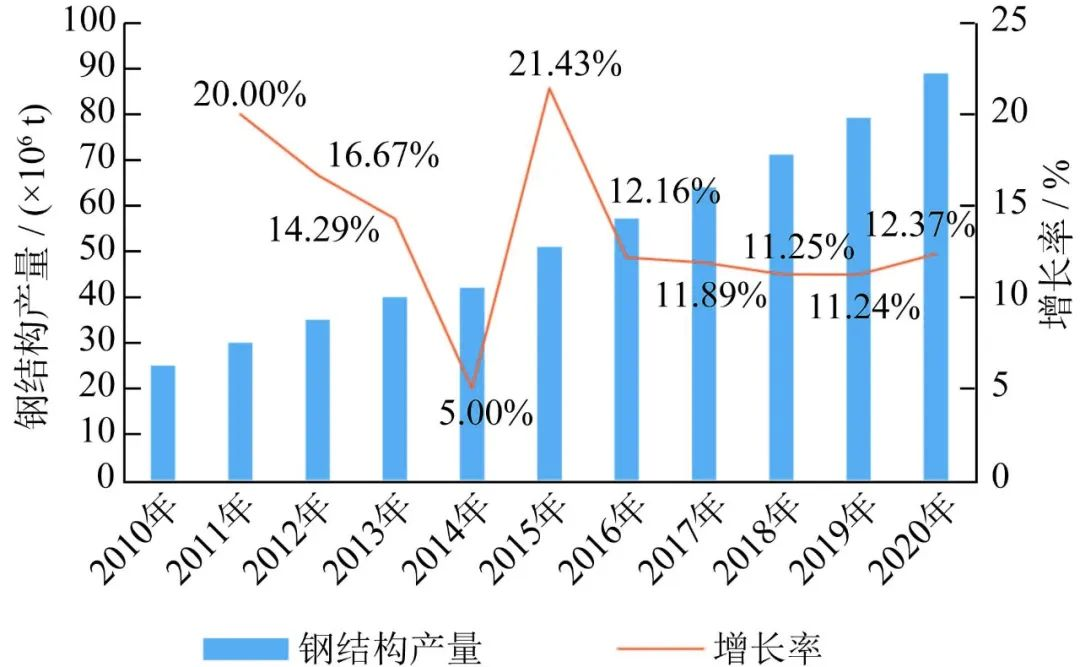 中國2010-2020年鋼結構產量趨勢